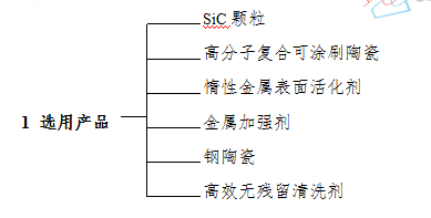 (2)高分子顆粒陶瓷是一種雙組份、填充陶瓷小顆粒、高性能表面涂層材料,主要成分是碳化硅、金屬碳化物和超硬陶瓷,具有良好的耐磨蝕和腐蝕性能,作為耐磨蝕和耐腐蝕保護涂層被廣泛的應用于各種化工設備及通用設備。適合應用于灰漿泵、水泵、風機、水輪機蝸殼、凈化煙道、氧化鋁粉輸送管道等內壁防腐耐磨局部或大面積修復。